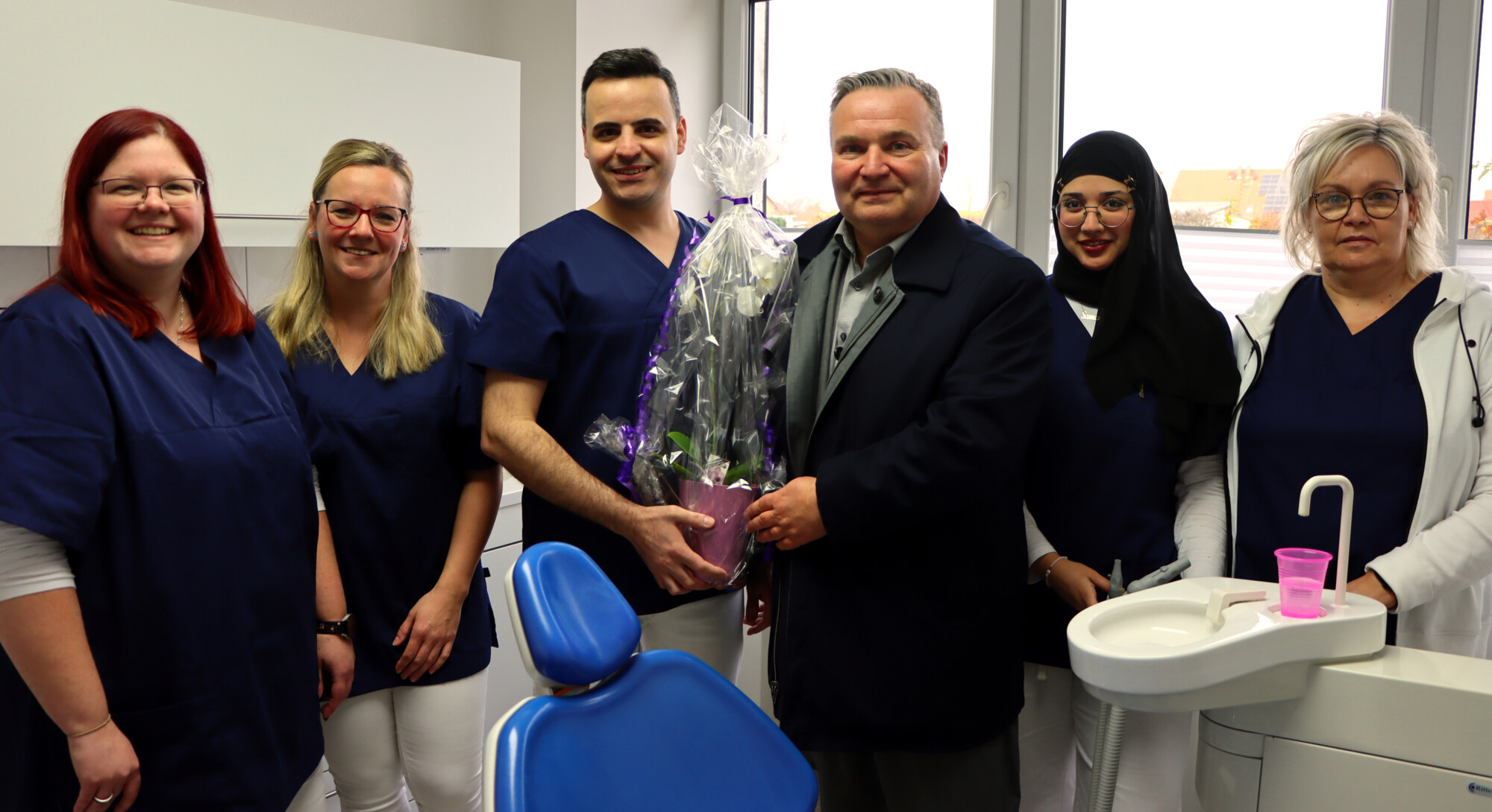 Die Praxis und das Team steht bereits jetzt für ihren Einsatz für die Zahngesundheit ihrer Patienten. Dabei möchte Herr Al Shemmari im Besonderen mit seinem Team den zu Behandelnden ein gutes Gefühl geben. Und das spürt man bereits mit dem Betreten der Praxis. Das medizinische Personal empfängt ihre Patienten herzlich und geht auf deren individuellen Bedürfnisse ein. Natürlich steht die umfassende zahnmedizinische Betreuung, die Qualität, Hygiene aber auch die persönliche Betreuung im Vordergrund. Bürgermeister Maik Schramm wünschte Herrn Al Shemmari und seinem freundlichen und kompetenten Team alles Gute und viel Erfolg.